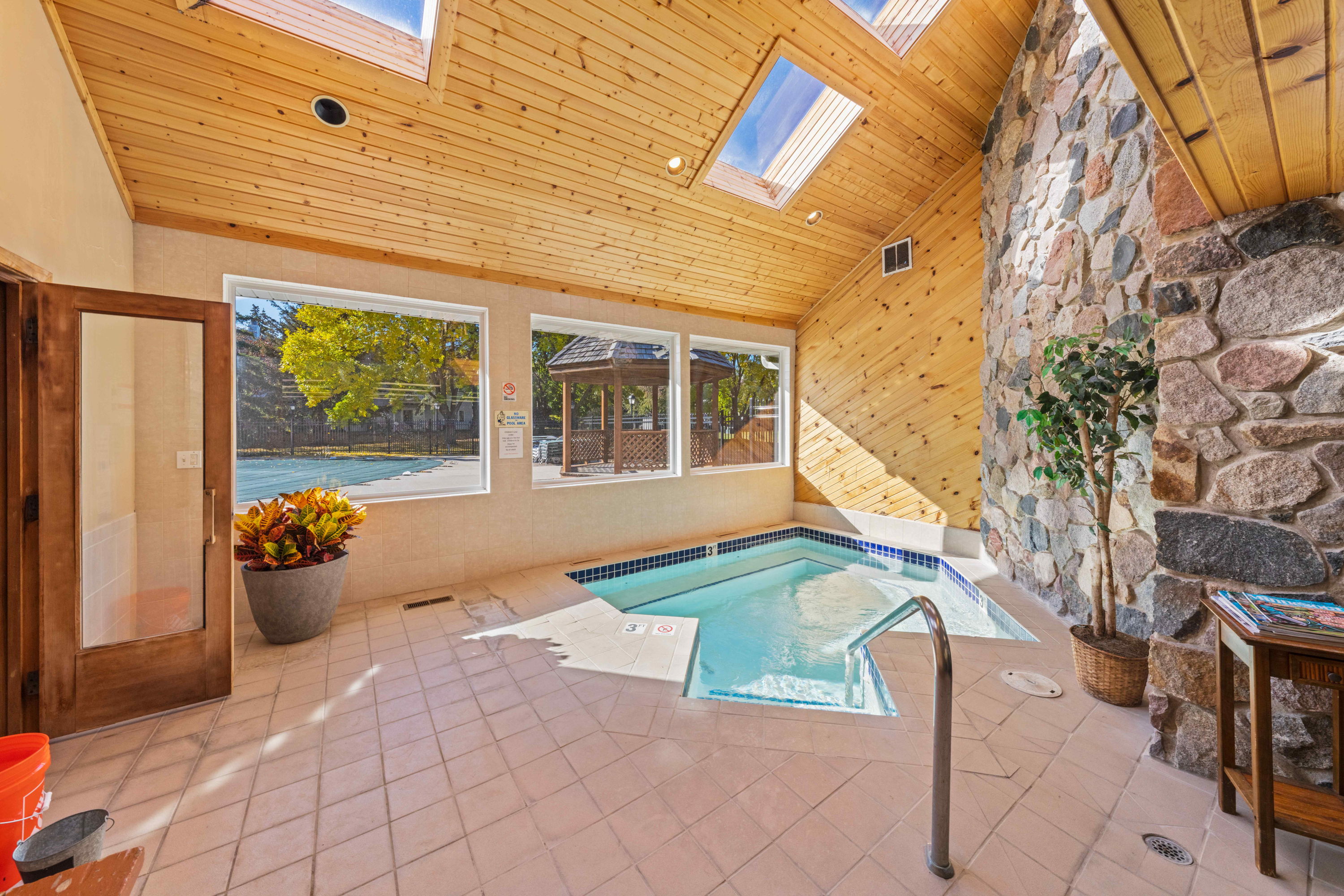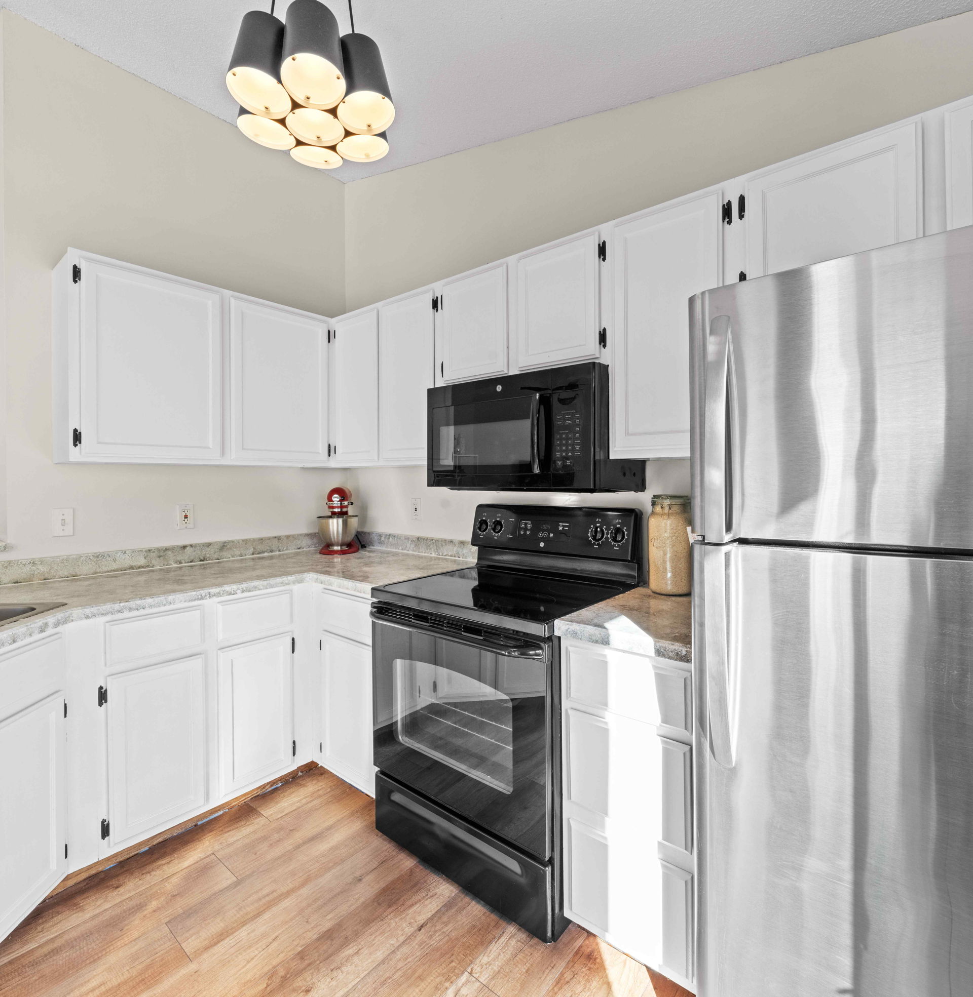 A crackling fireplace, wood flooring and a ceiling fan make this living room the ultimate comfort zone. The entrance to this wonderful room has a beautiful custom closet. The large windows, patio door to the covered porch and vaulted ceilings make this room seem bigger than it is.